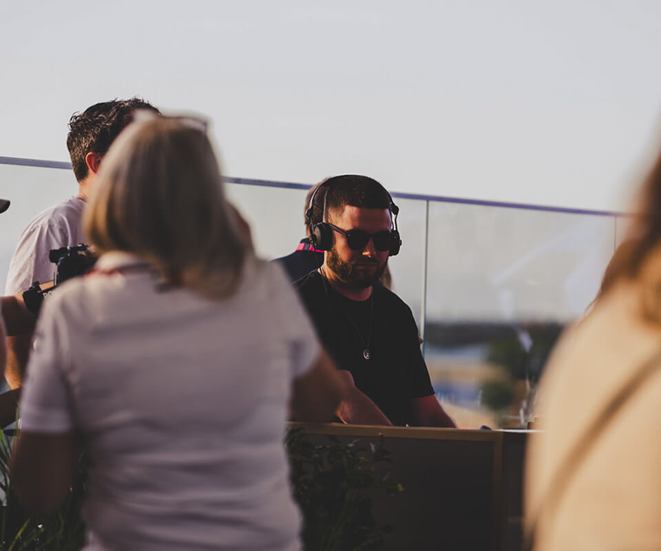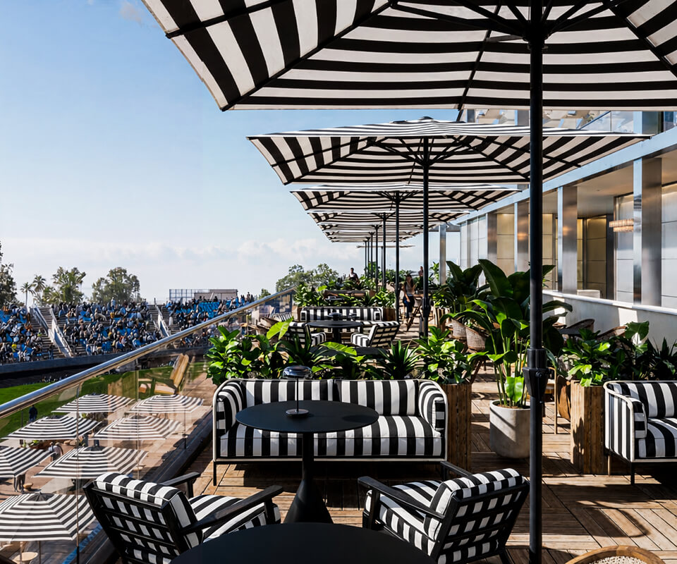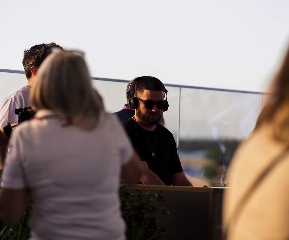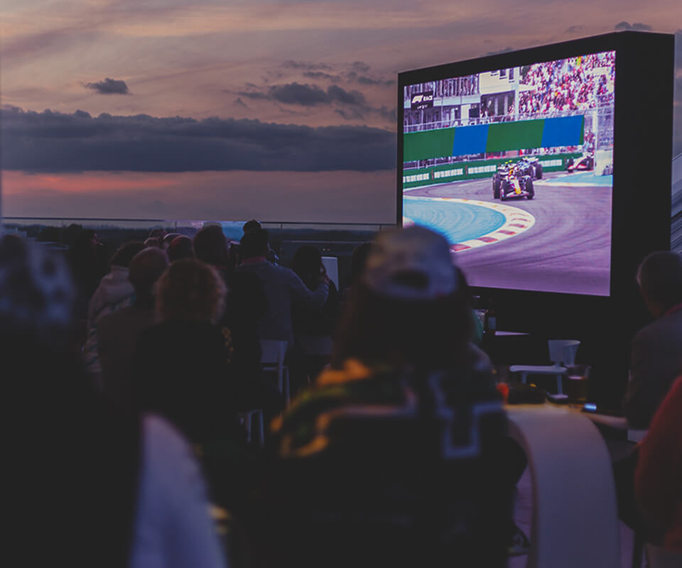 Un espacio dinámico con múltiples zonas donde los invitados disfrutan del restaurante, el rooftop y acceso al escenario principal de Official Hospitality. Sets de DJ en directo, anfitriones reconocidos, entrevistas exclusivas y pantallas con la retransmisión en directo de la carrera, creando una atmósfera de fiesta electrizante.