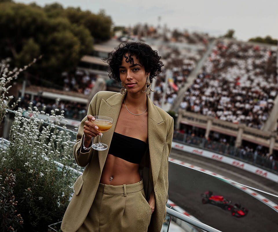 El sábado tras las clasificaciones, sube a la exclusiva afterparty de Official Hospitality en la terraza, con impresionantes vistas del atardecer sobre Madrid. Este club de varios niveles crea un espacio social glamuroso y sociable para los que buscan una experiencia elevada del Gran Premio de España.