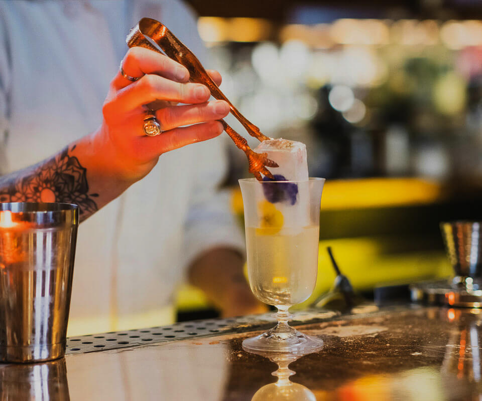 Carta selecta con cócteles premiados, champán Moët & Chandon Imperial Brut, vino, cerveza y licores. Otros champán y destilados exclusivos a la venta para darle el toque final a tu experiencia.